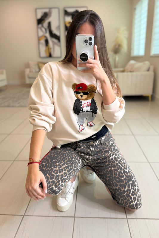 Structured Leopard Denim Pants