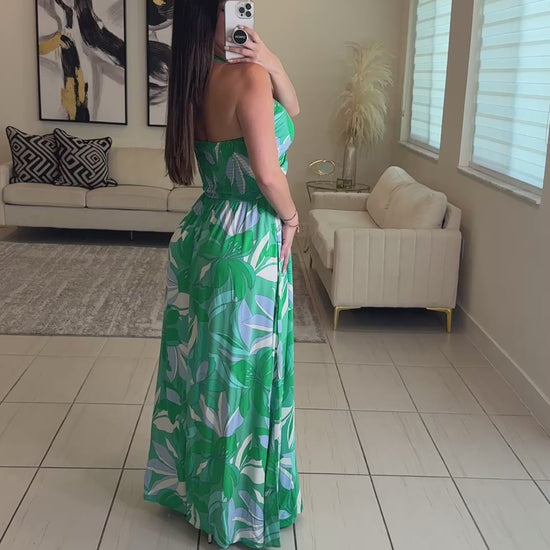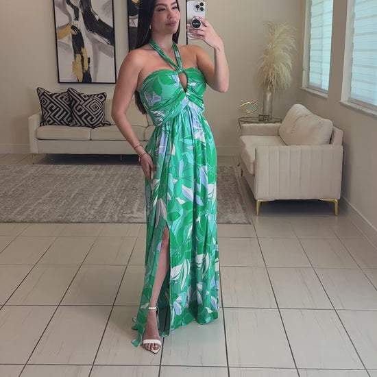 Cosmic Palms Green Maxi Dress