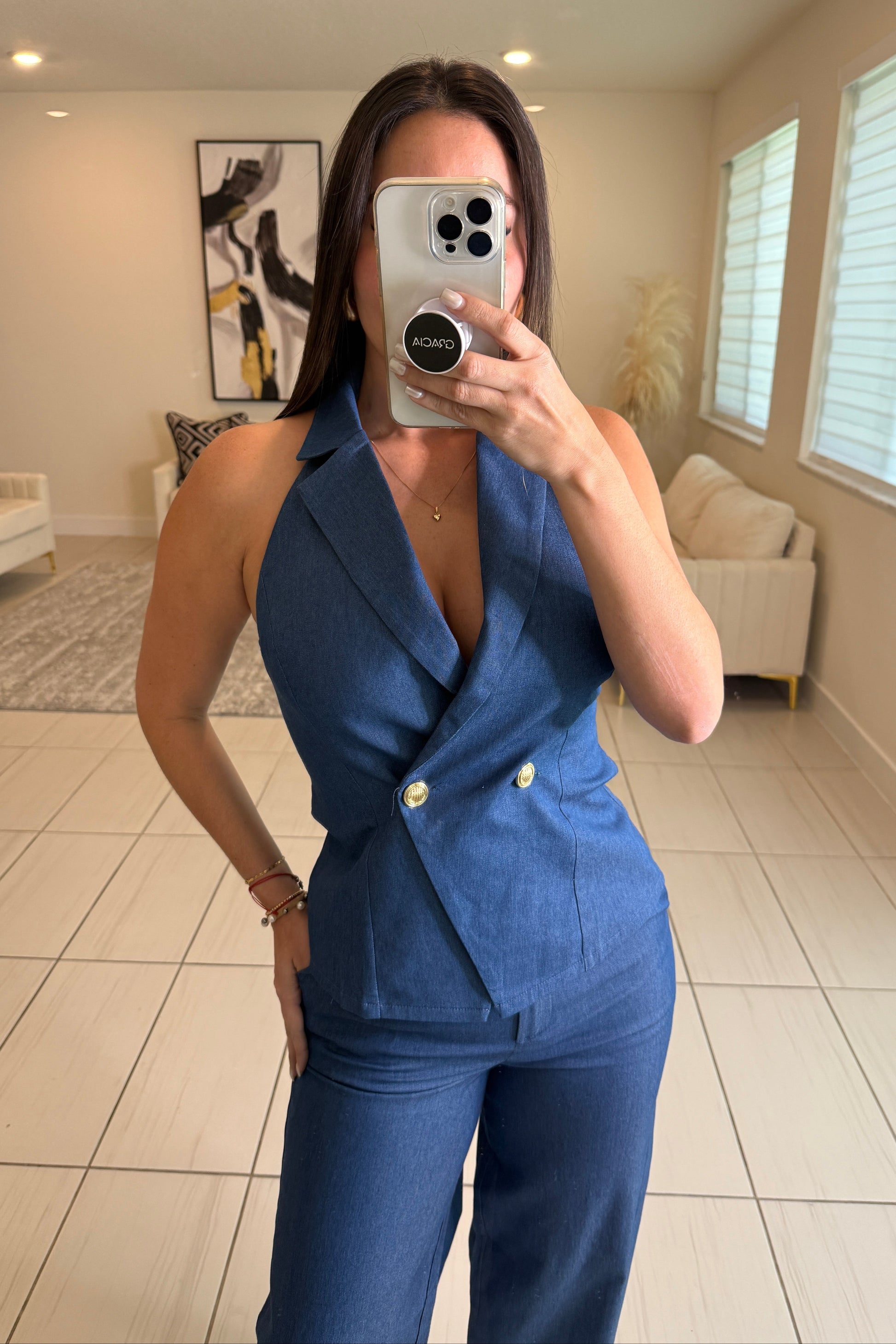 The Gold Rush Denim Pant Set combines timeless denim quality with modern style, offering a flattering fit and exceptional comfort. Perfect for dressing up or down, this set enhances your look with its sleek design and durable fabric. Make a bold statement effortlessly with this versatile and stylish denim ensemble.