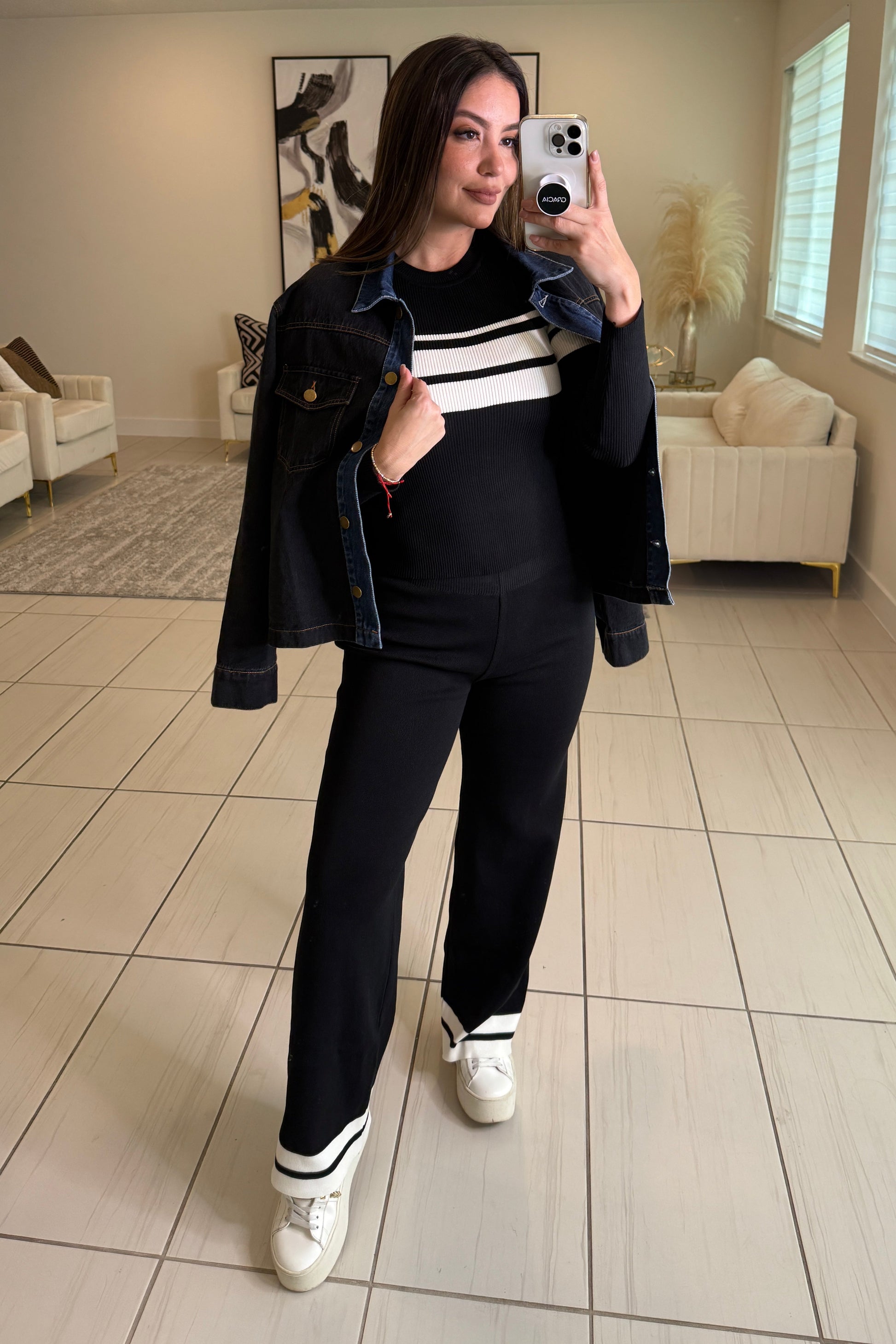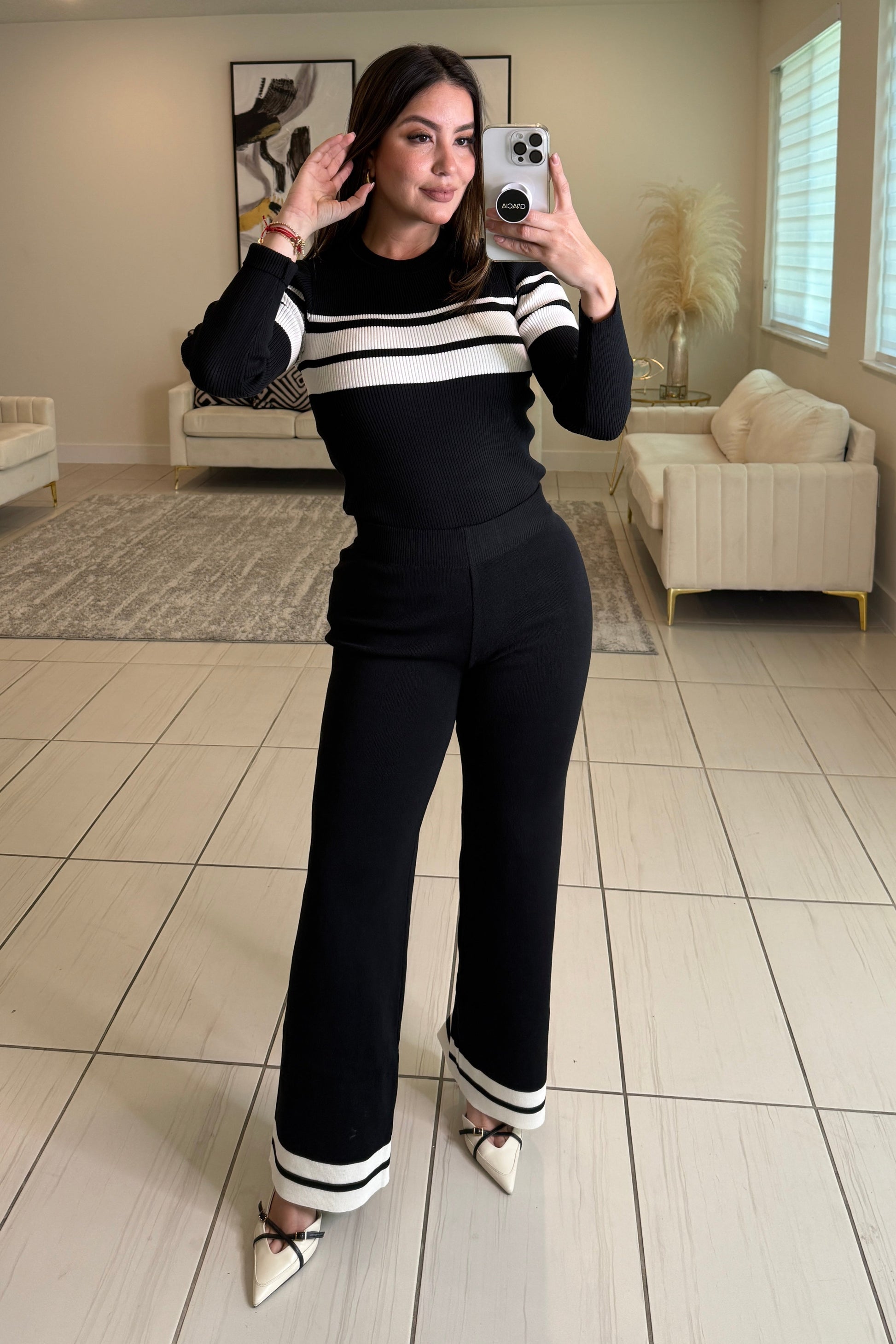 Elevate your wardrobe with the Iconic Knit Black Pant Set—a perfect blend of comfort and style. Crafted from soft, breathable knit fabric, this set offers a flattering fit that moves with you throughout the day. Whether for lounging or casual outings, its sleek black design ensures you look effortlessly chic while enjoying exceptional ease. Redefine everyday elegance with this versatile staple.