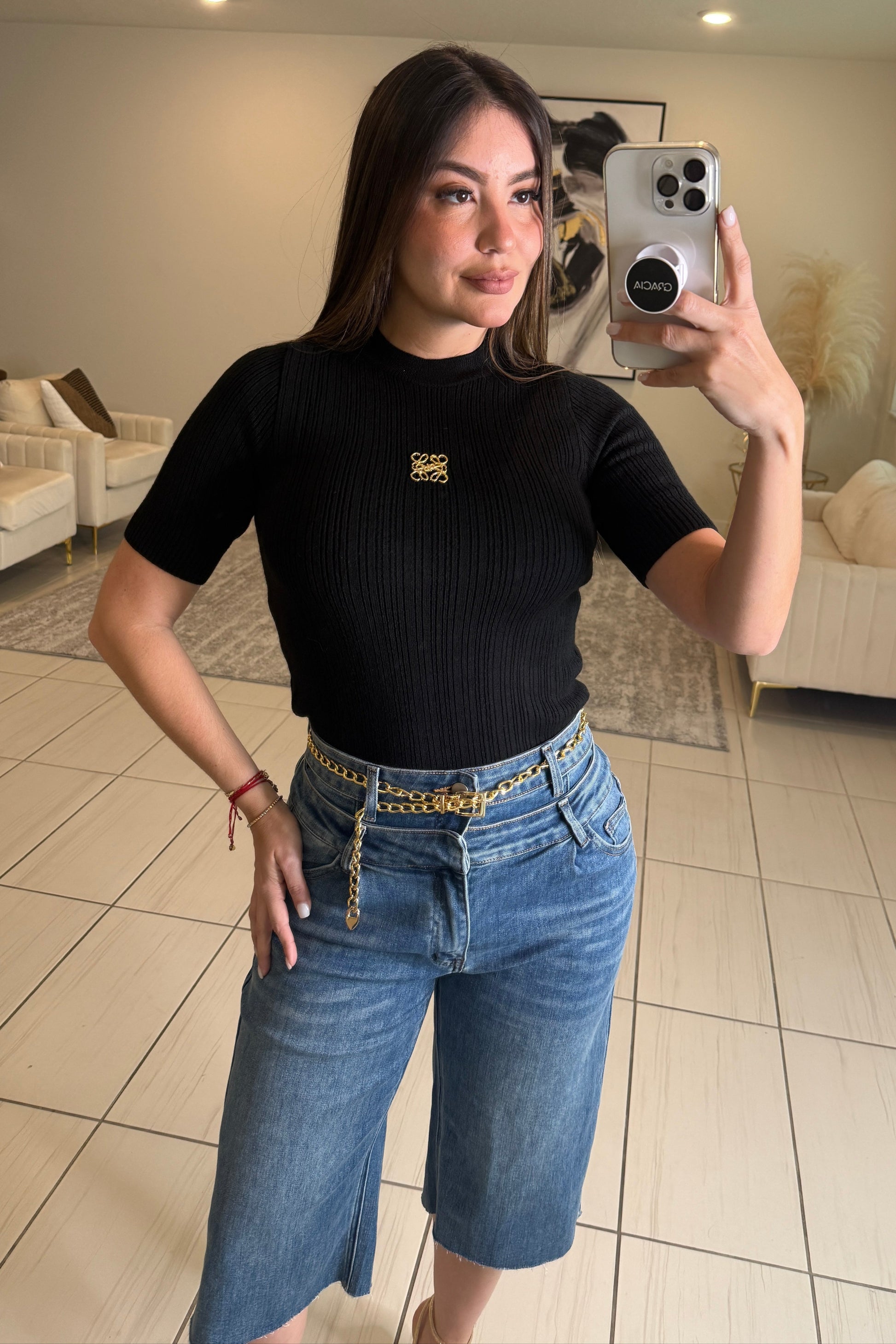Discover timeless elegance with the Iconic Knit Black Top. Crafted from soft knit fabric, this sweater offers cozy comfort while the delicate pearl detailing adds a refined, luxurious touch. Perfect for elevating your everyday look or adding sophistication to special occasions, it’s a versatile piece that combines warmth and style effortlessly. Make this sweater the centerpiece of your wardrobe and enjoy lasting charm season after season.
