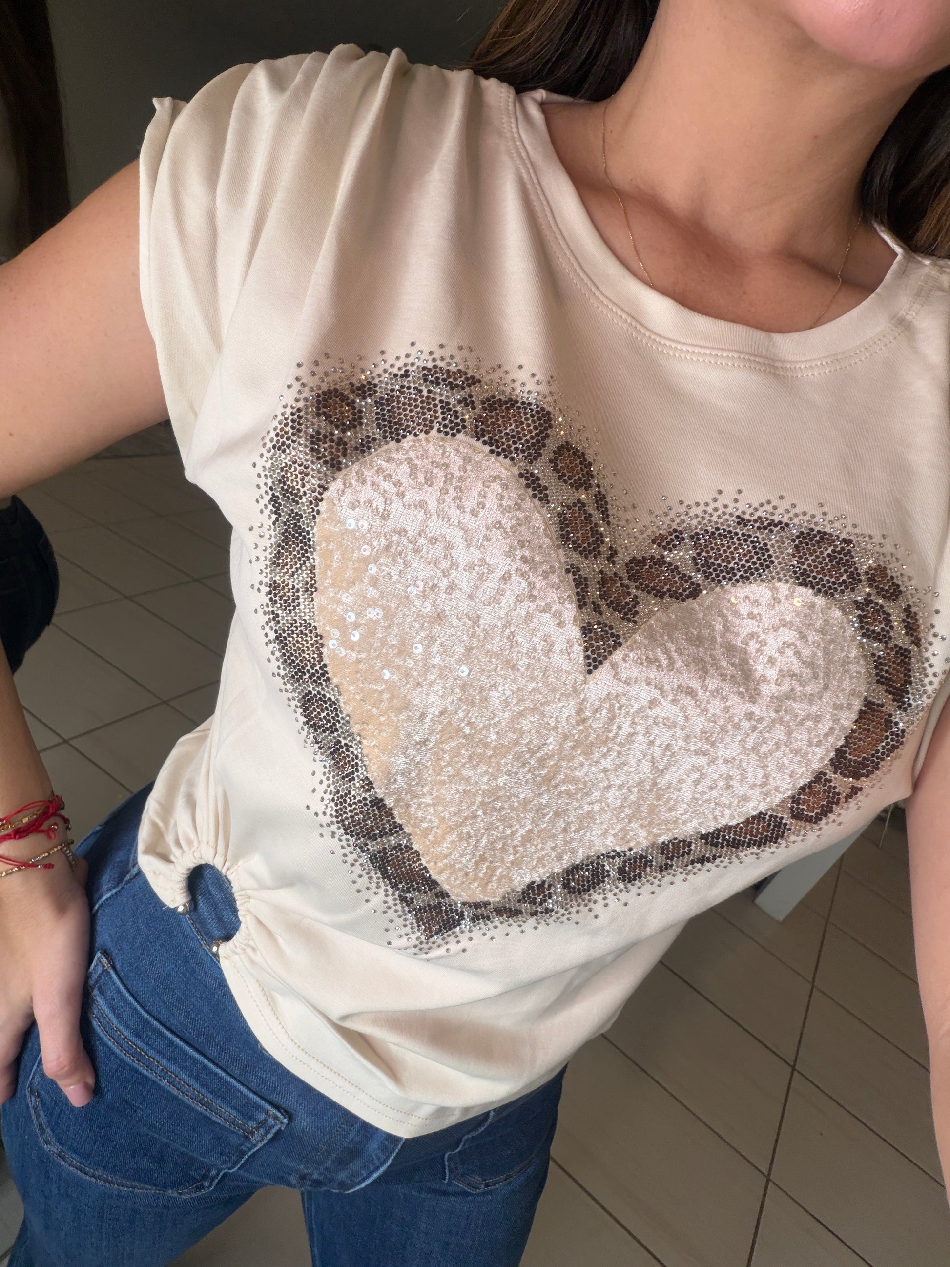 Make a statement with this stunning beige top featuring an enchanting mix of leopard print and heart stone details. The neutral base color offers endless styling possibilities—wear it solo for understated elegance or layer it for added dimension. Perfect for those who crave a touch of personality without sacrificing sophistication, this piece transitions seamlessly from day to night. Invest in a top that celebrates your individual style while delivering the comfort and quality you deserve.