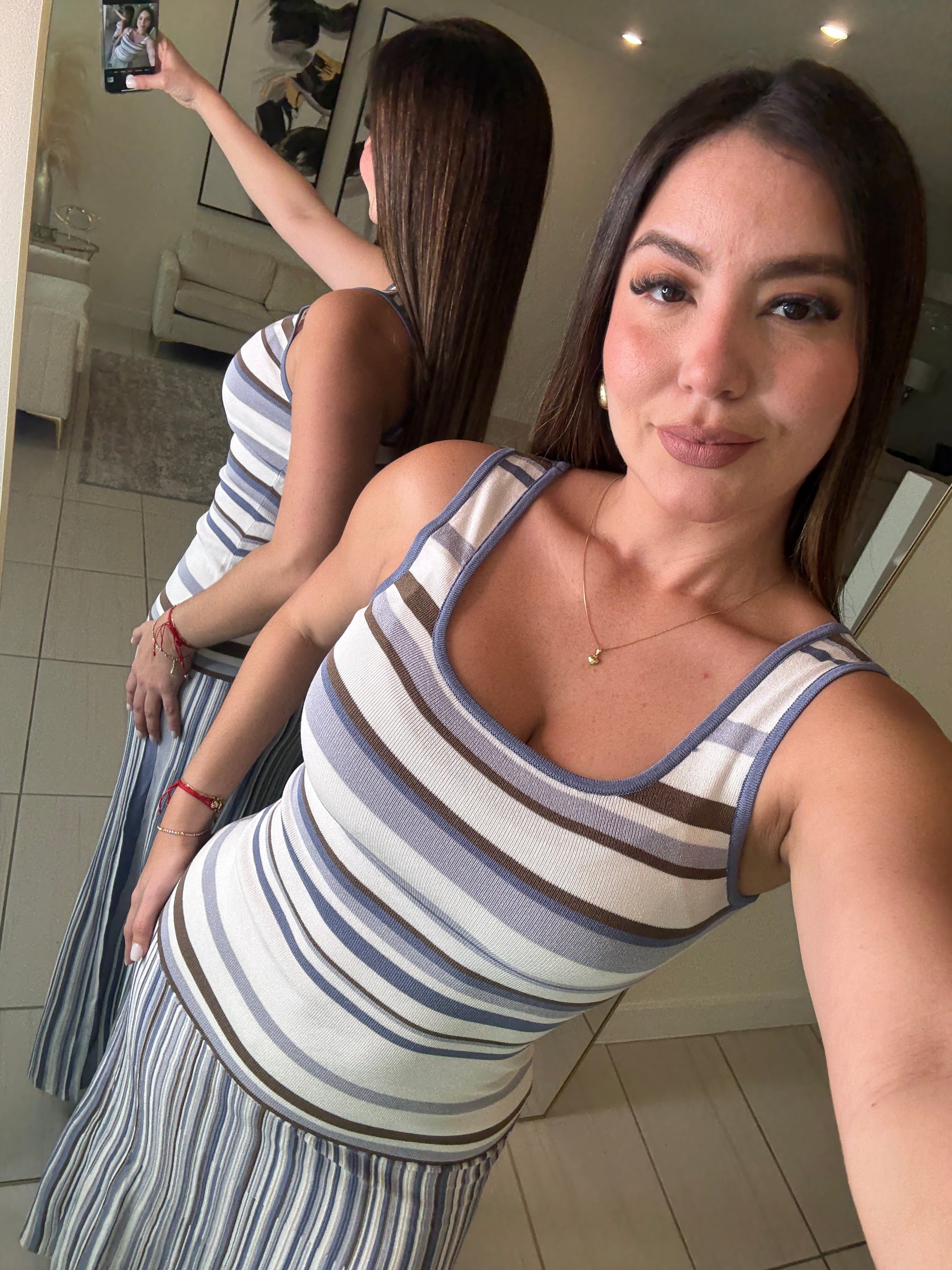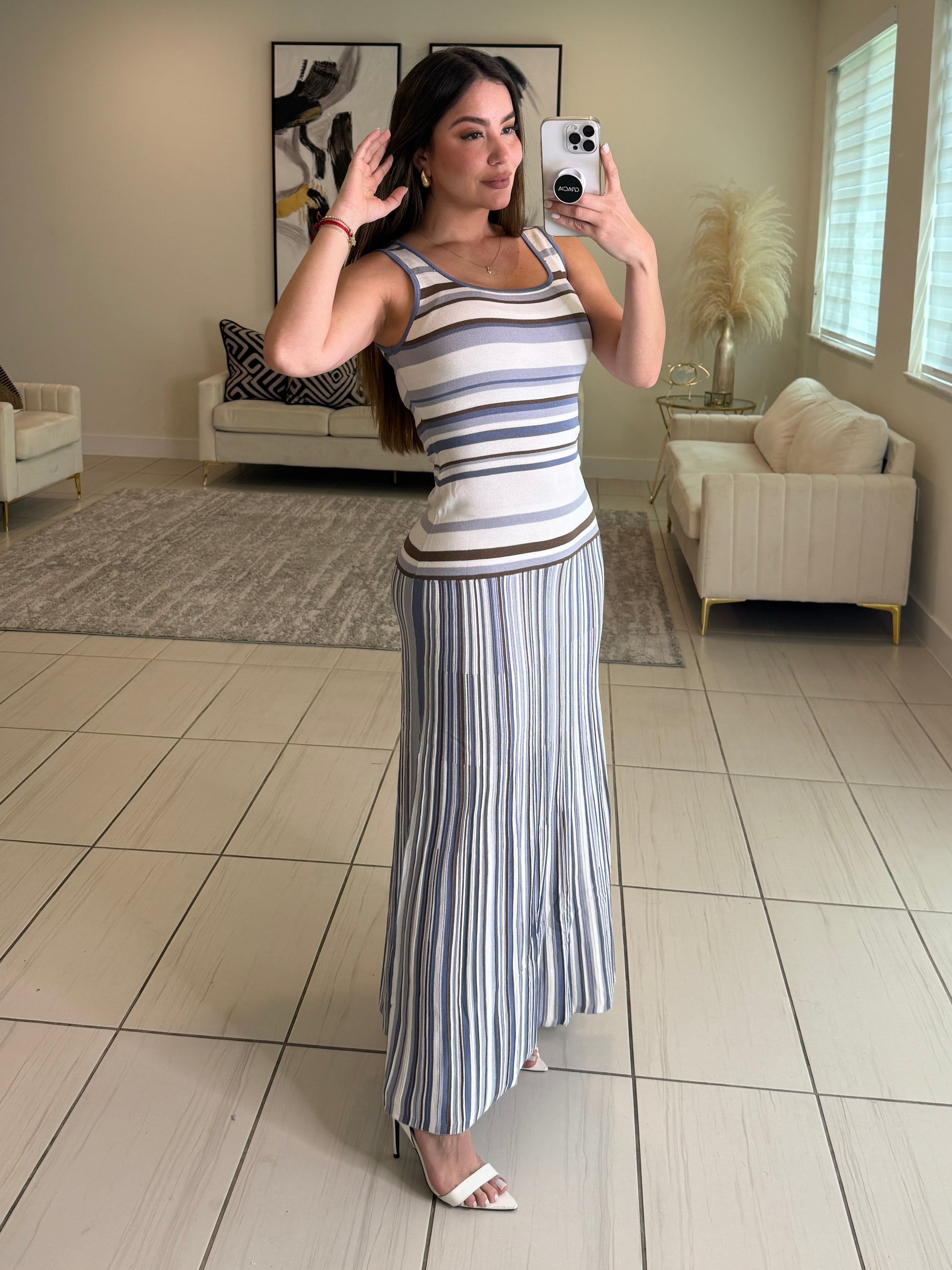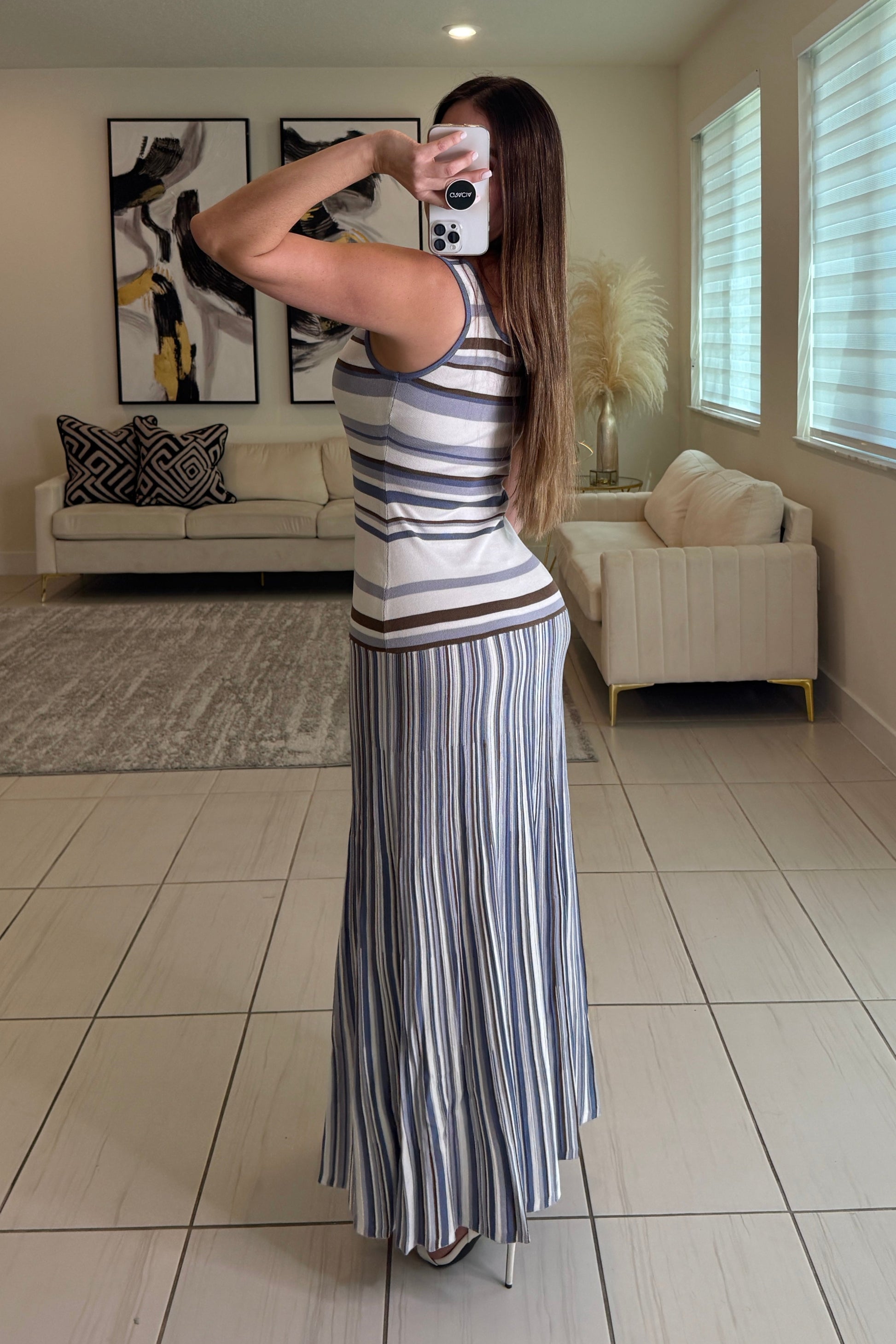 The Linear Muse Stripes Blue Maxi Dress combines elegance and comfort with its flowing silhouette and vibrant blue stripes. Designed to flatter all body types, this maxi dress is perfect for turning heads at any event or enjoying a stylish day out. Embrace effortless sophistication and make this versatile piece a standout addition to your wardrobe.