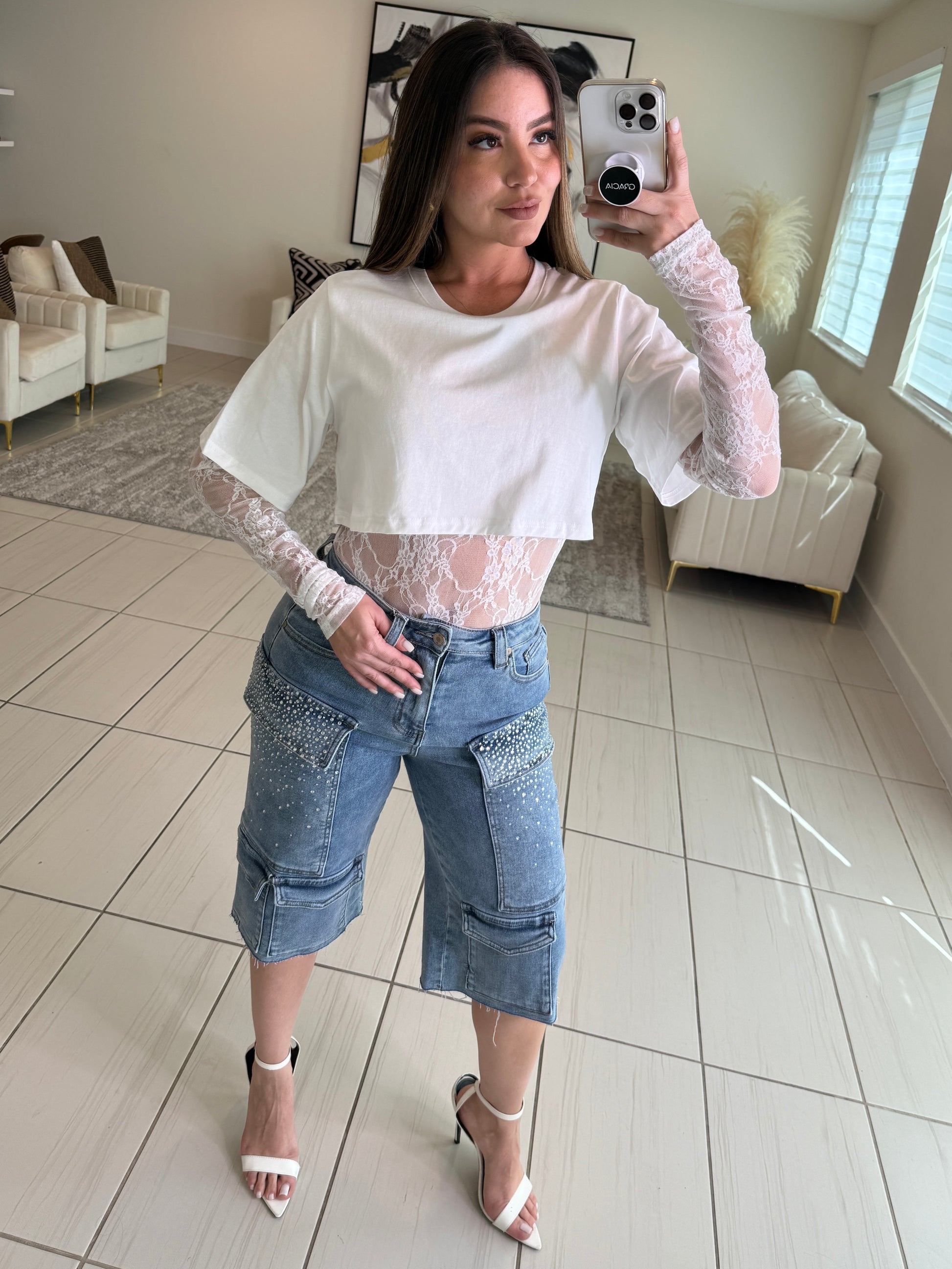Elevate your elegance with the Luxe Instinct Lace White Bodysuit. Crafted from delicate lace, this piece seamlessly combines comfort and sophistication, enhancing your silhouette with a flattering fit. Its pristine white hue adds a timeless charm, perfect for layering or wearing on its own to make a confident statement. Embrace luxury every day with this stunning bodysuit designed to highlight your natural grace.