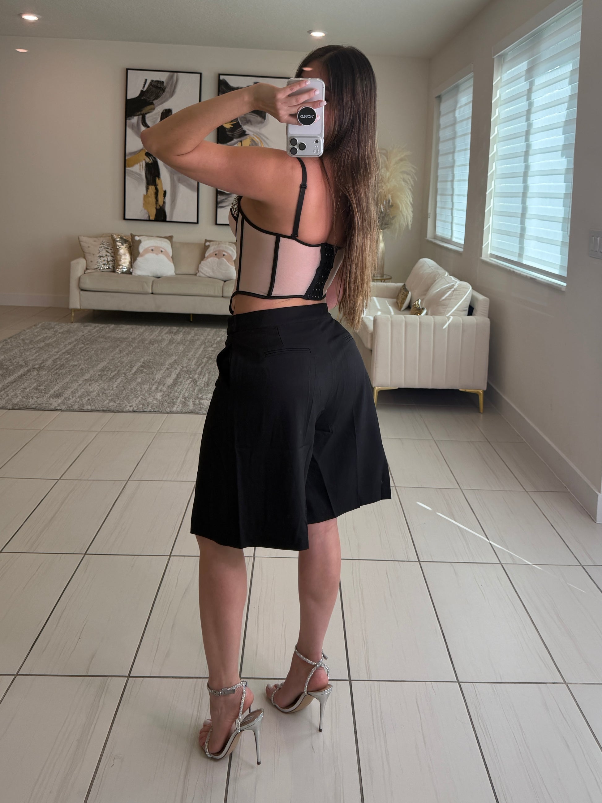 Elevate your style with the Luxe Rhinestone Beige and Black Corset Top. This elegant piece combines a classic silhouette with sparkling rhinestone accents, offering a perfect balance of sophistication and edge. Designed to flatter your figure, it seamlessly pairs with both casual and dressy looks, making it a versatile addition to your wardrobe. Step into confidence and shine wherever you go with this standout corset top.