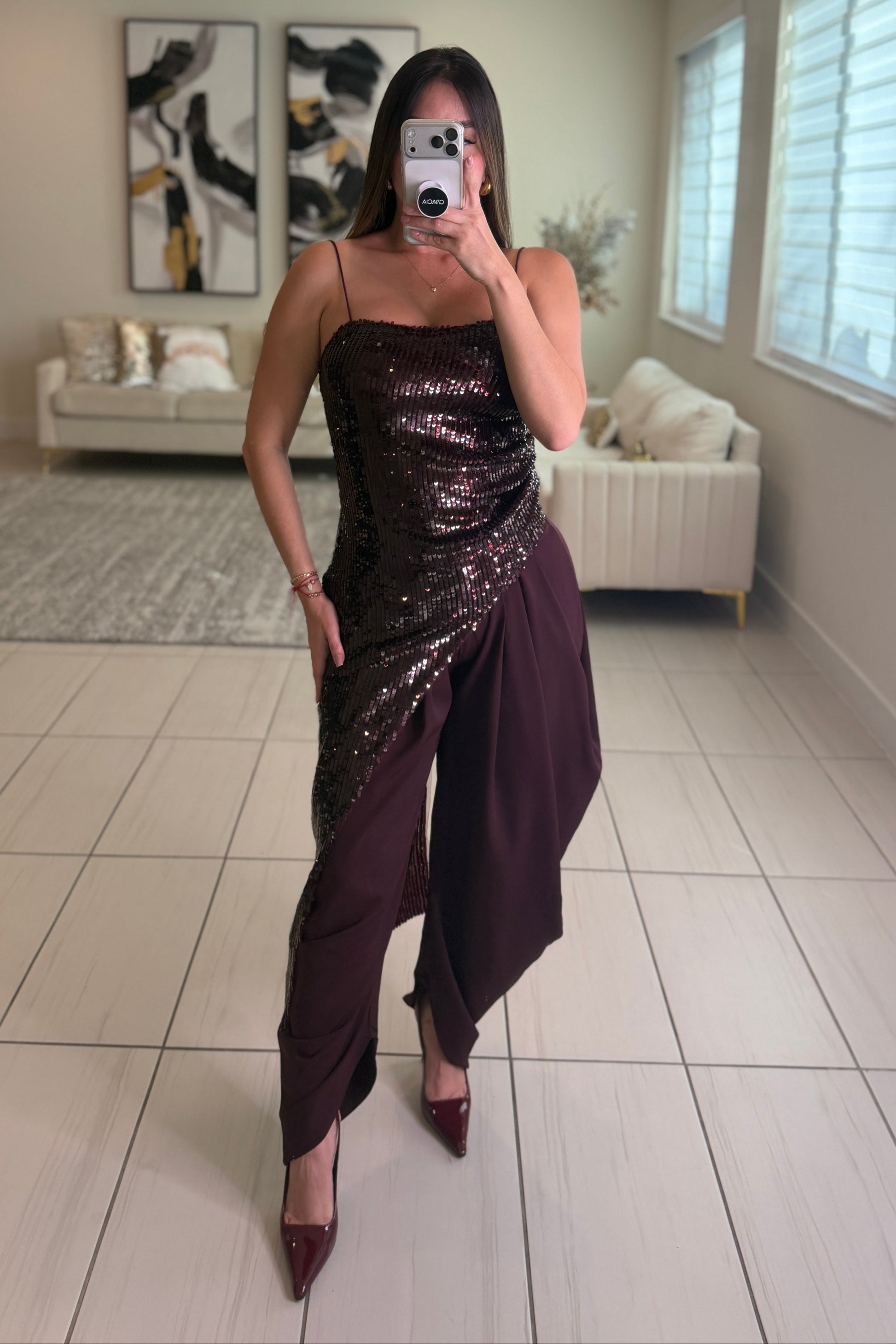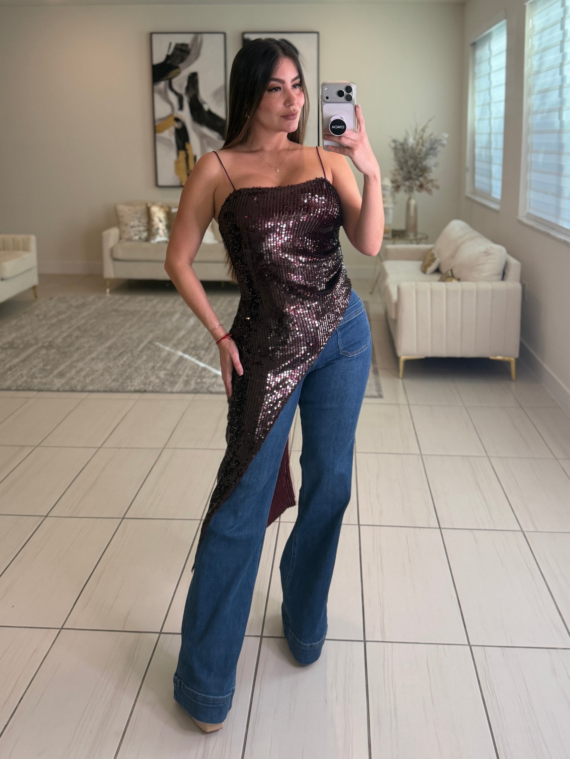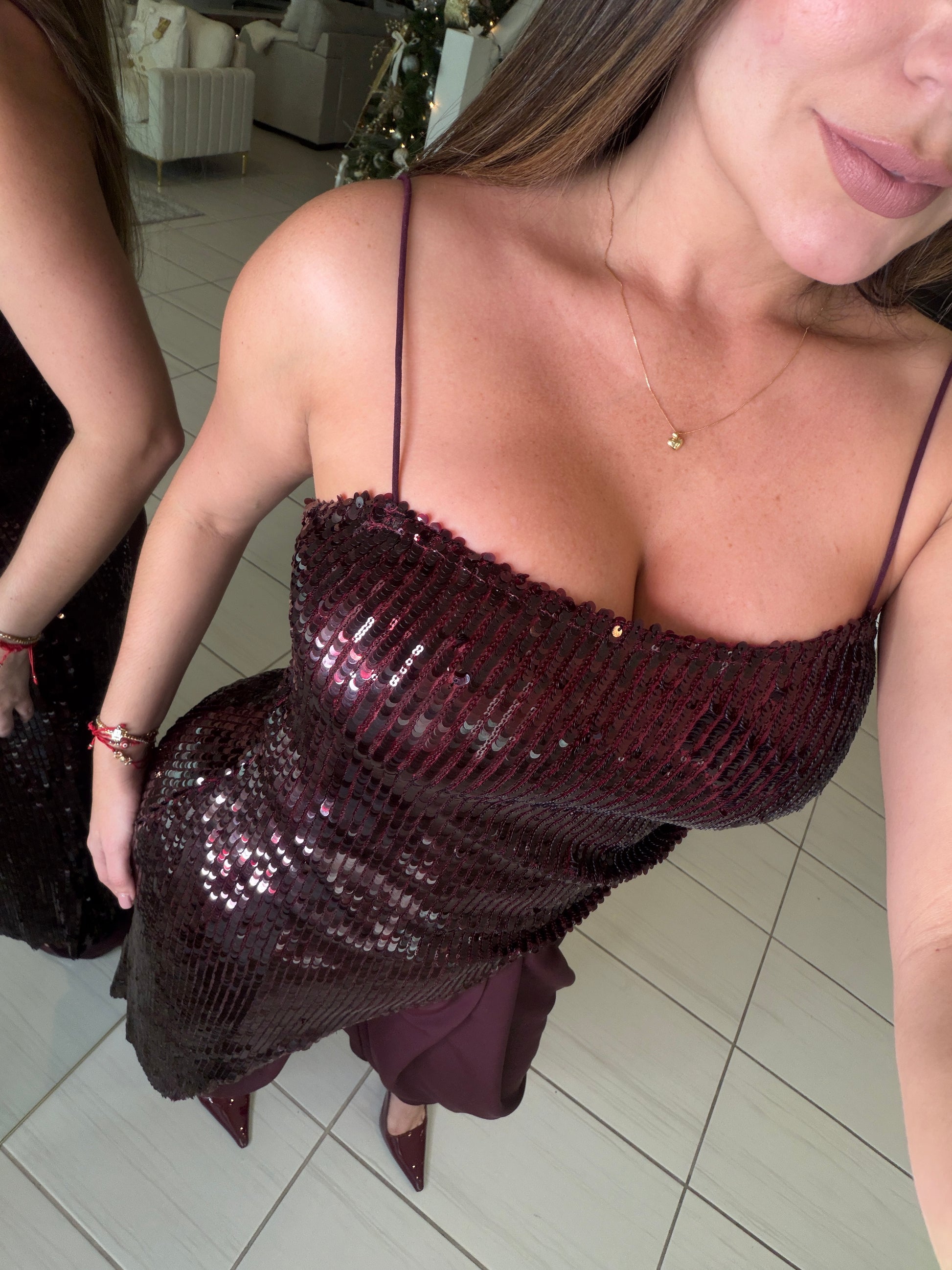 Make a bold statement with the Midnight Glitz Sequin Burgundy Top, where sophistication meets dazzling style. This stunning piece features premium sequins in a deep burgundy shade that exudes elegance and allure. The shimmering embellishments catch light with every movement, ensuring you stand out at any event. Whether you're heading to a cocktail party, holiday celebration, or special night out, this top delivers the glamour and confidence you deserve. Versatile enough to dress up or down, it's the perfect addition to any fashion-forward wardrobe.