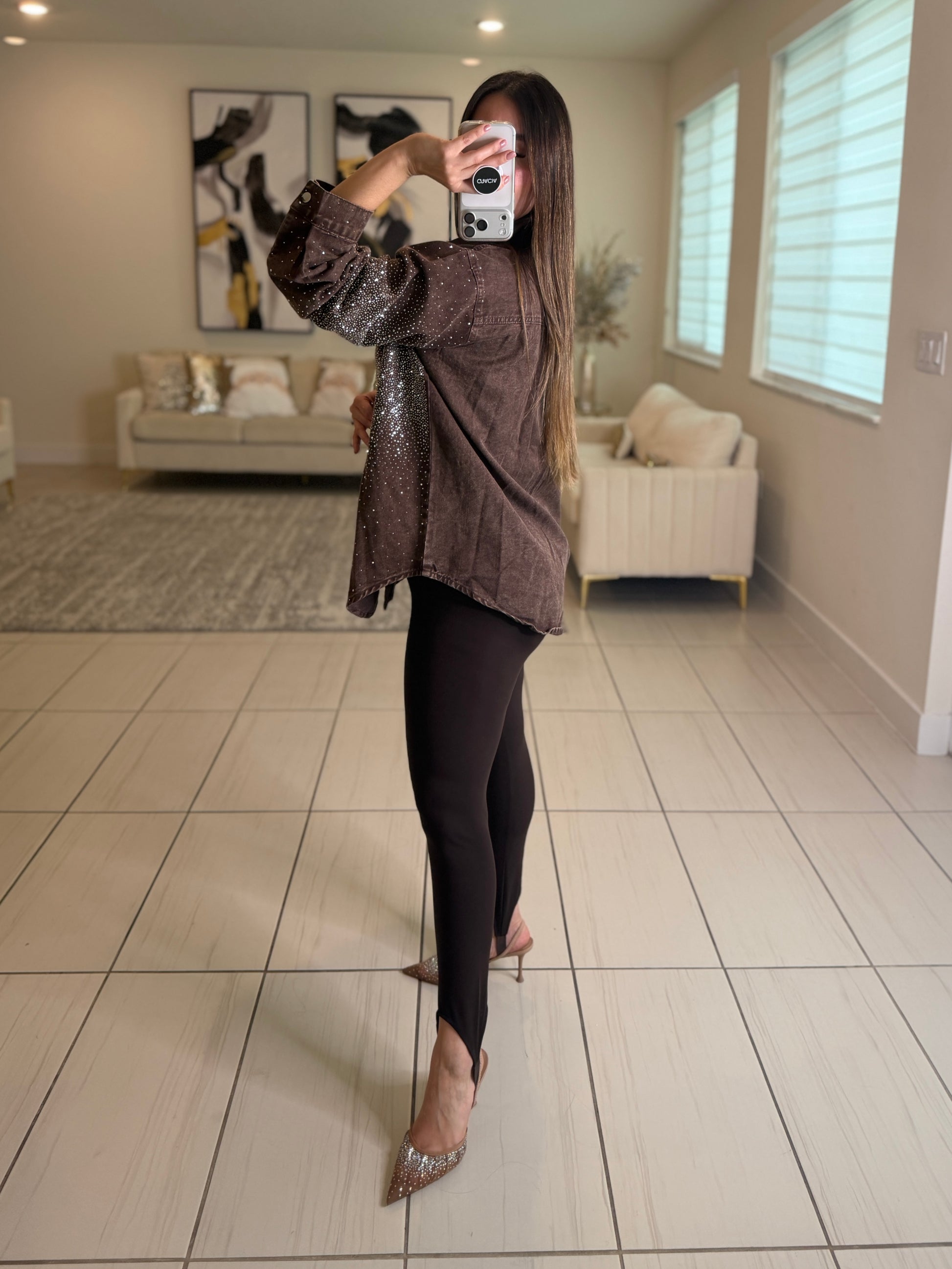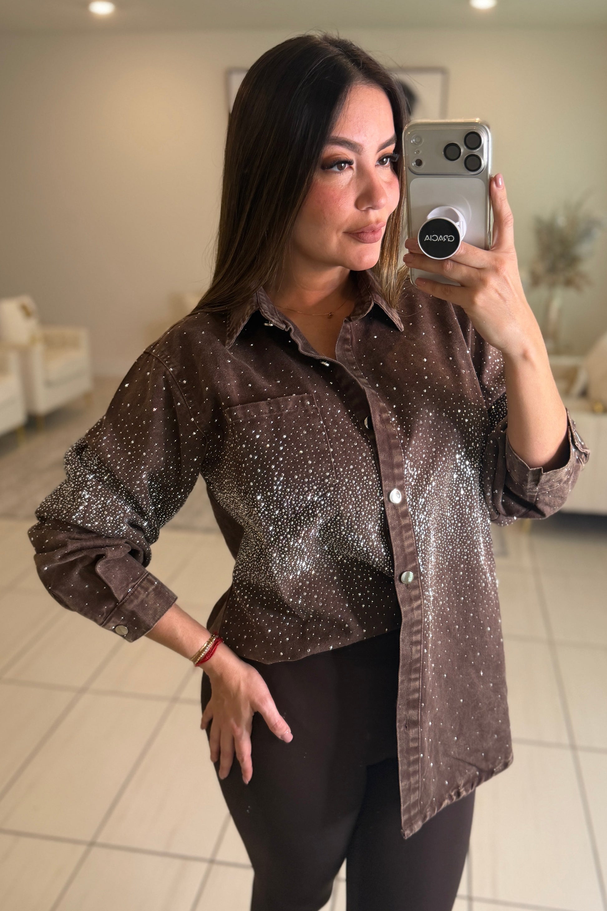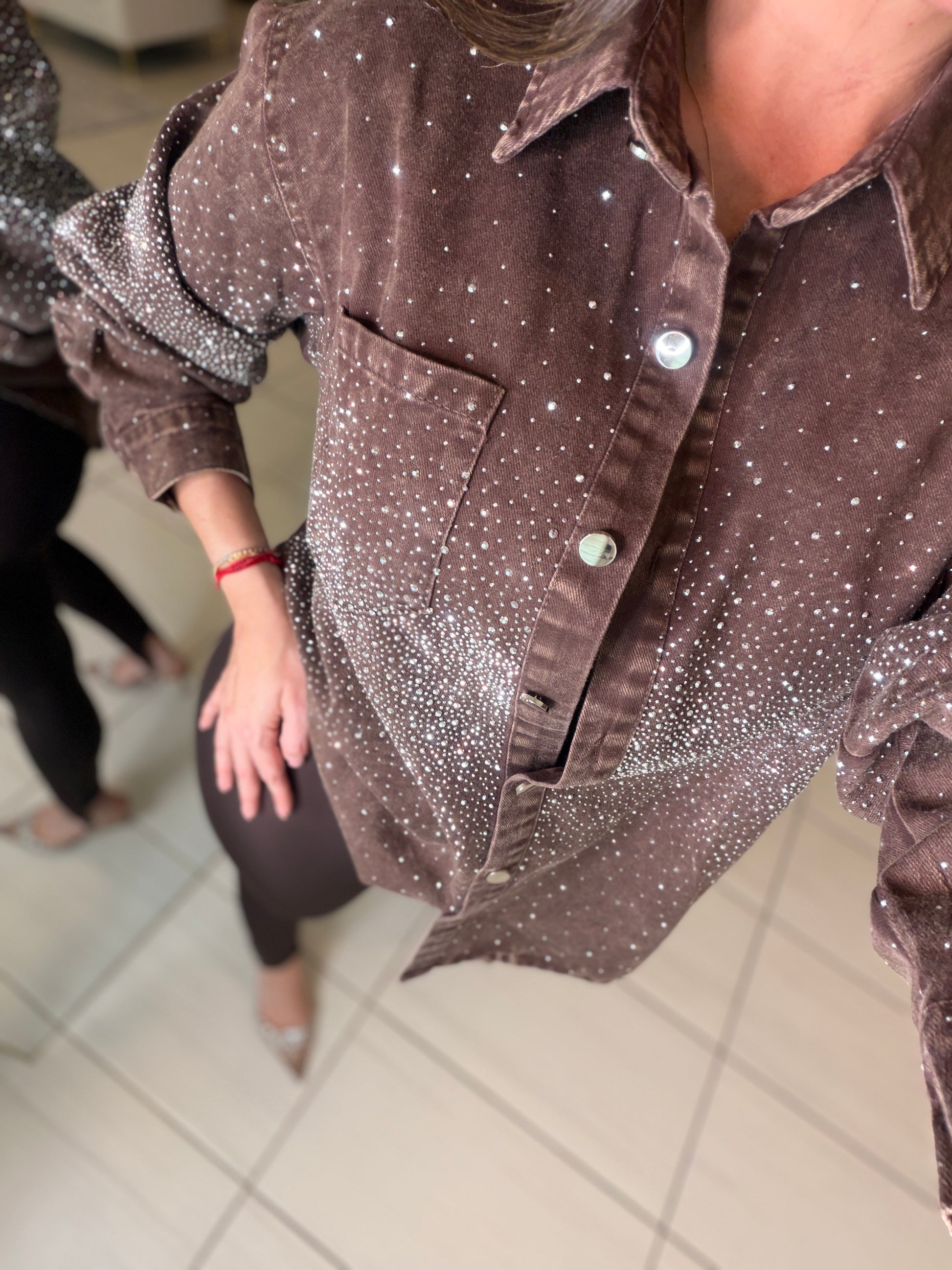Elevate your wardrobe with this stunning Crystal Rhinestones Brown Jacket—where timeless sophistication meets eye-catching glamour. The rich brown hue provides versatile styling options, while intricate crystal rhinestone embellishments add a touch of luxury and sparkle to any outfit. Perfect for special occasions, nights out, or whenever you want to make a memorable impression. This jacket combines classic tailoring with modern embellishment, ensuring you stand out with confidence and style. Transform your look and embrace the elegance you deserve.