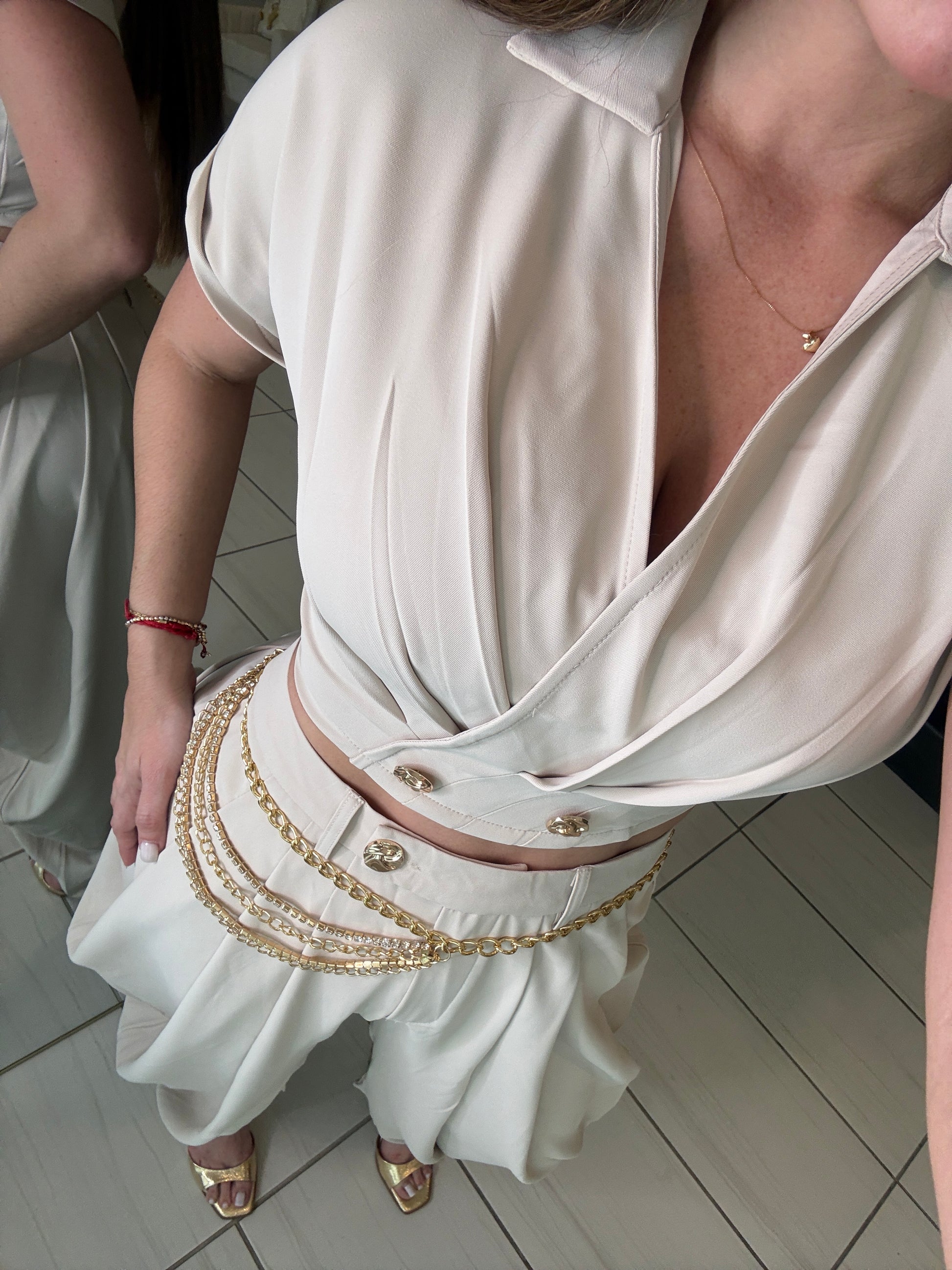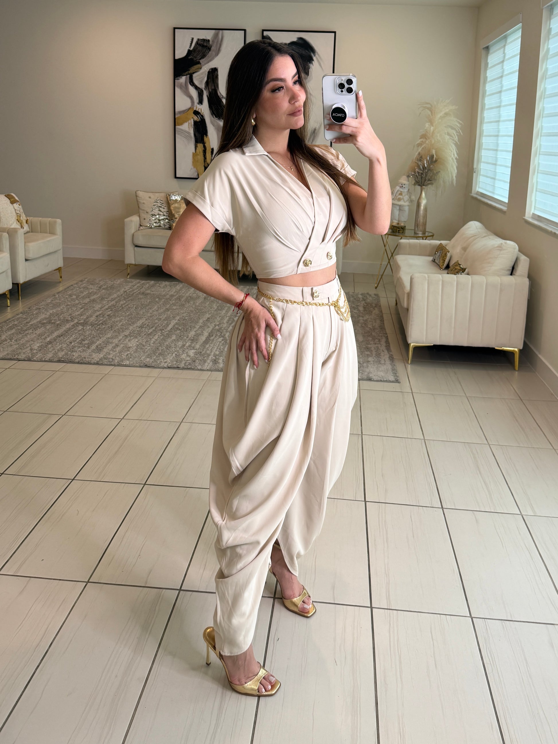 Parallel Balloon Beige Pant Set