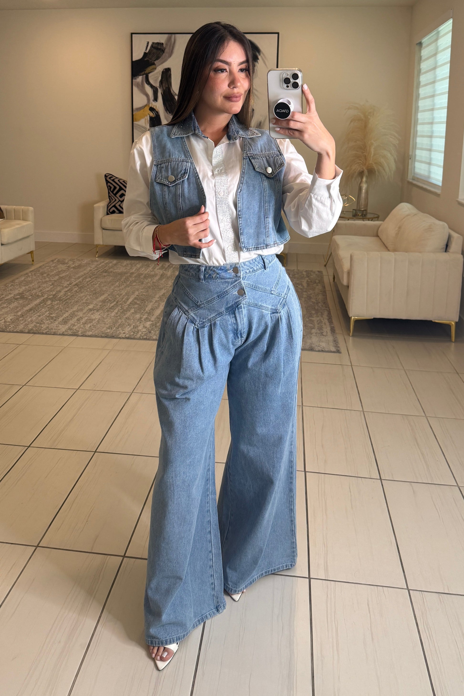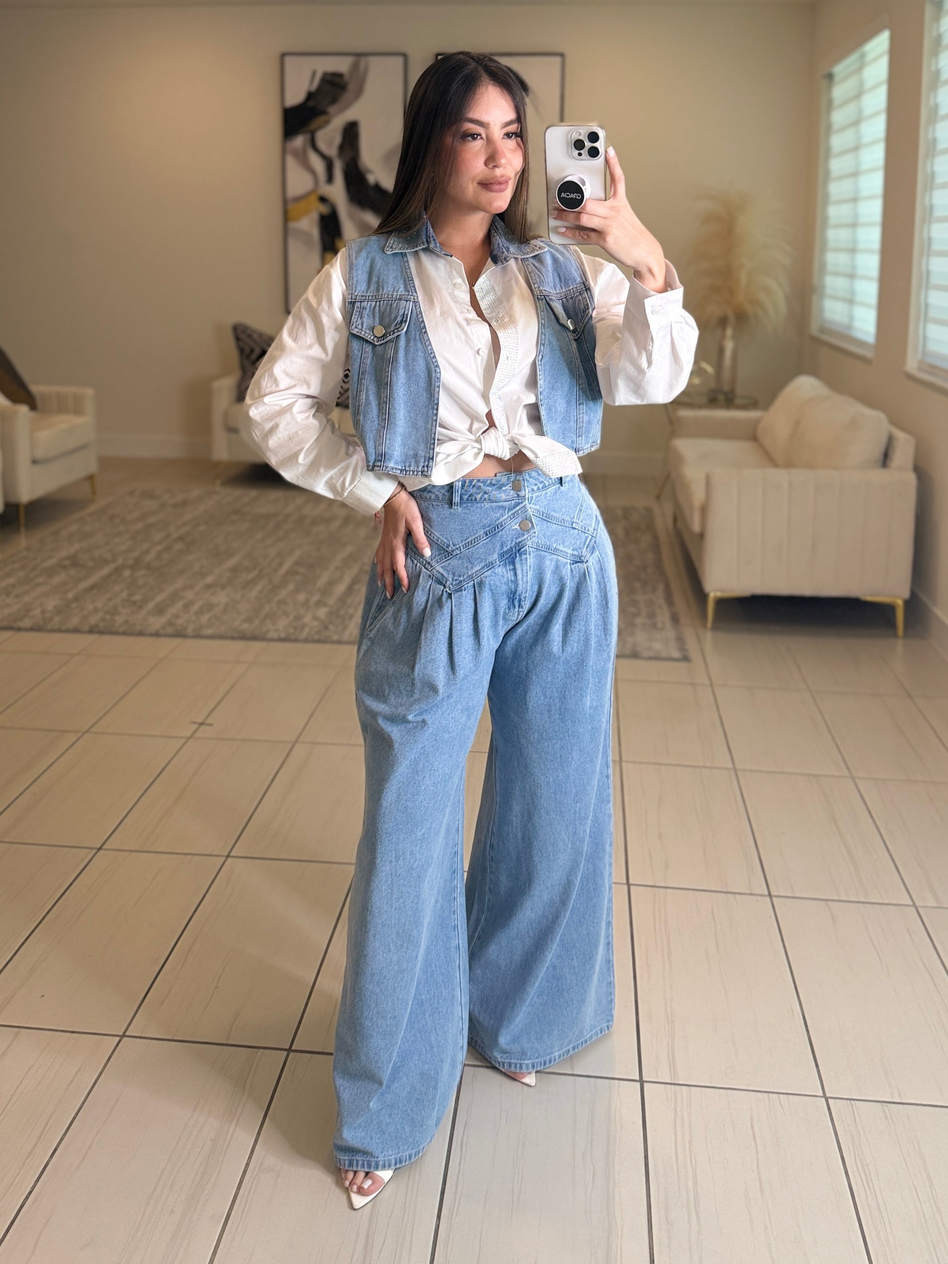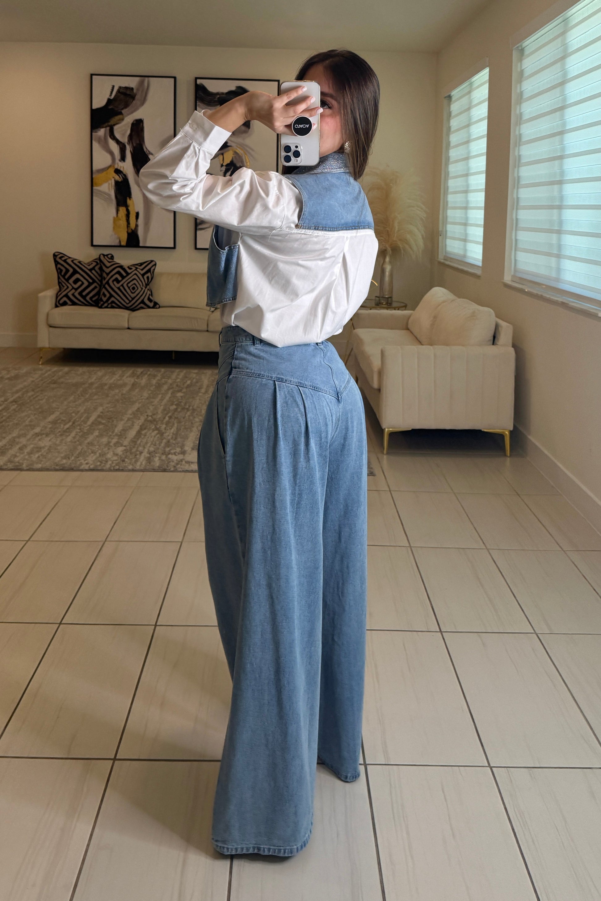 Elevate your wardrobe with our Pintuck Wide Leg Denim Pants, designed for a chic and comfortable fit. The wide-leg silhouette offers effortless movement and a flattering shape, while subtle pintuck detailing adds a sophisticated touch. Crafted from durable denim, these pants blend style and practicality, perfect for dressing up or down. Experience all-day comfort without compromising on fashion.