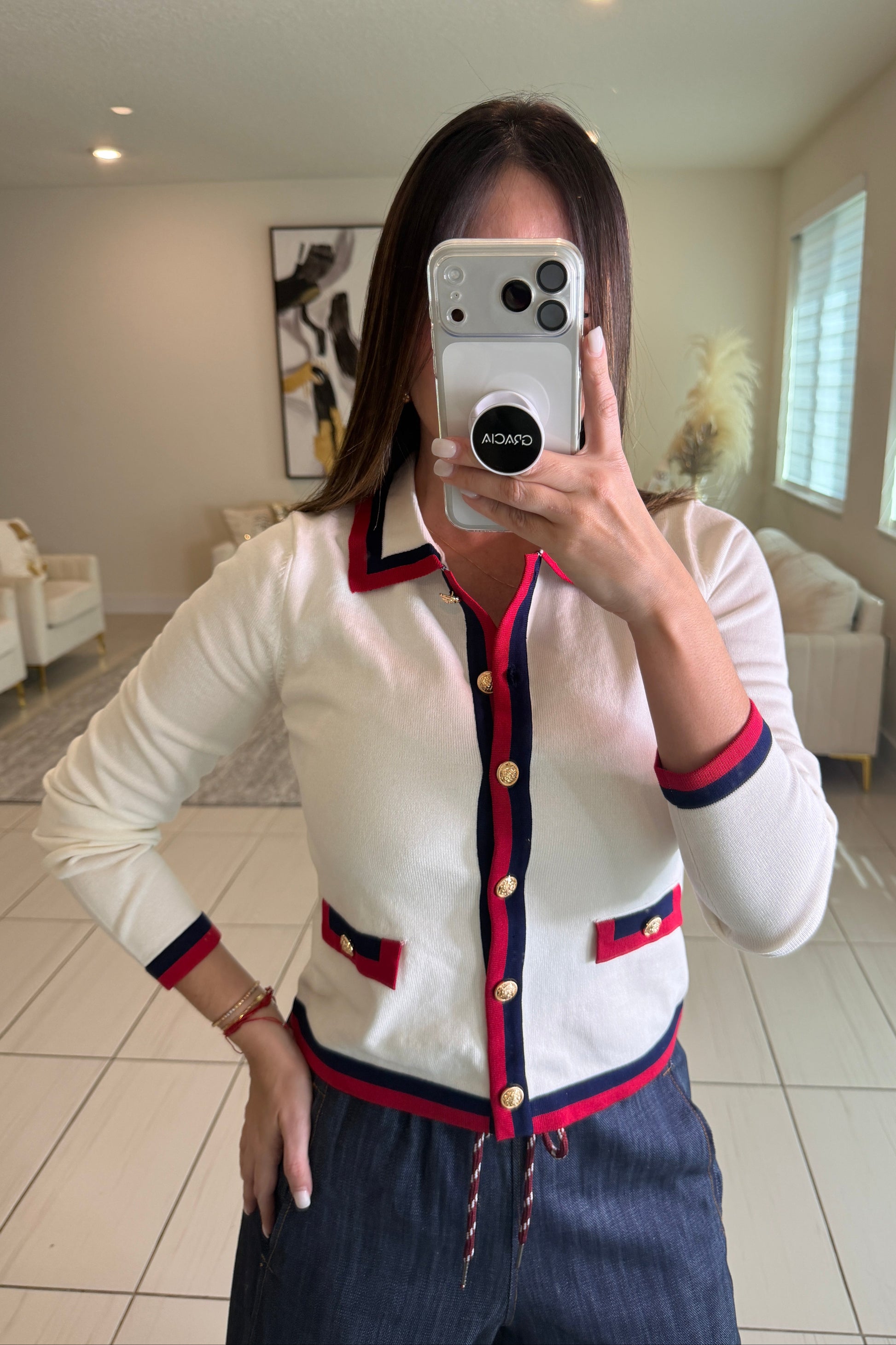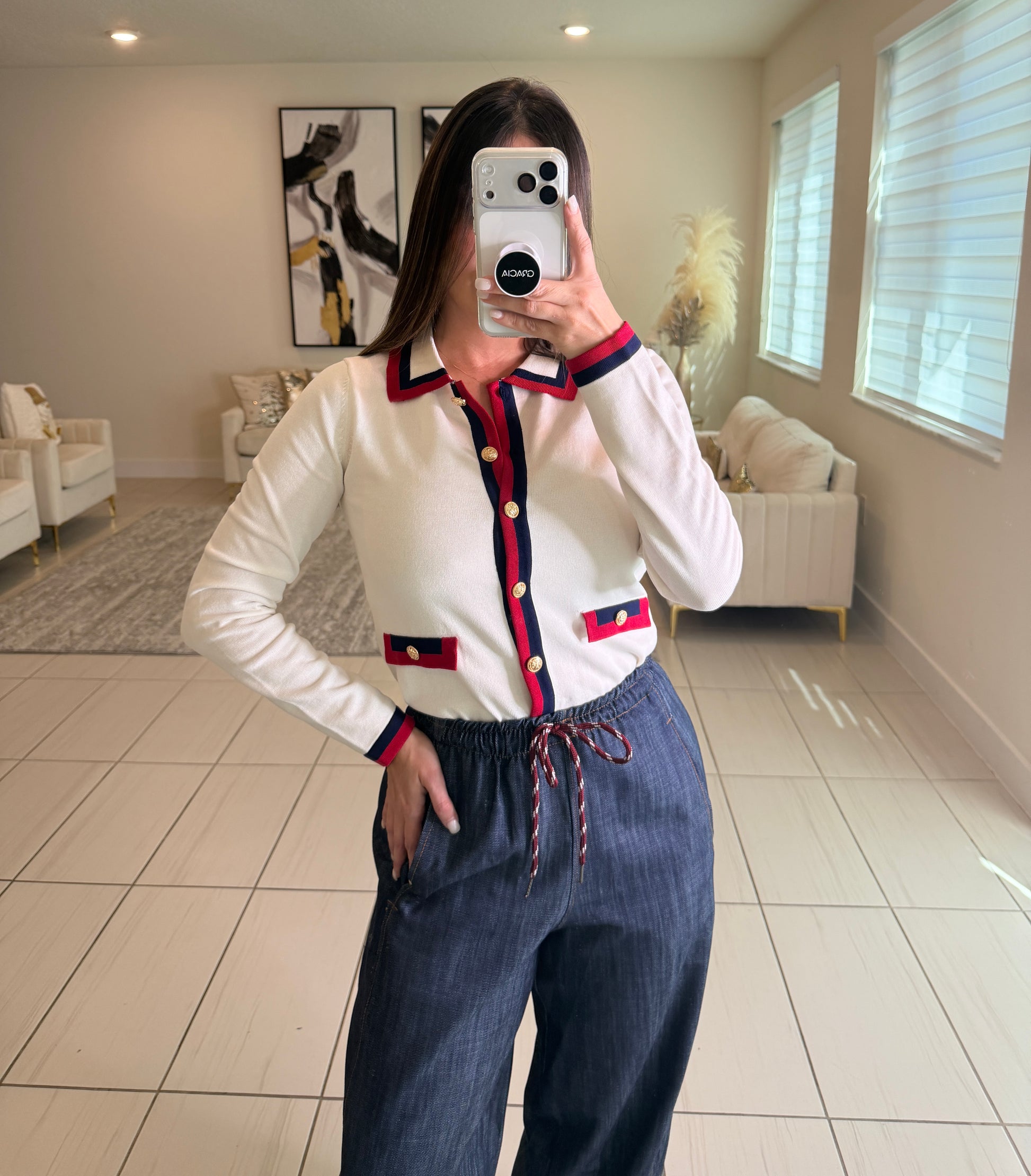 Sharp Authority Knit White Top