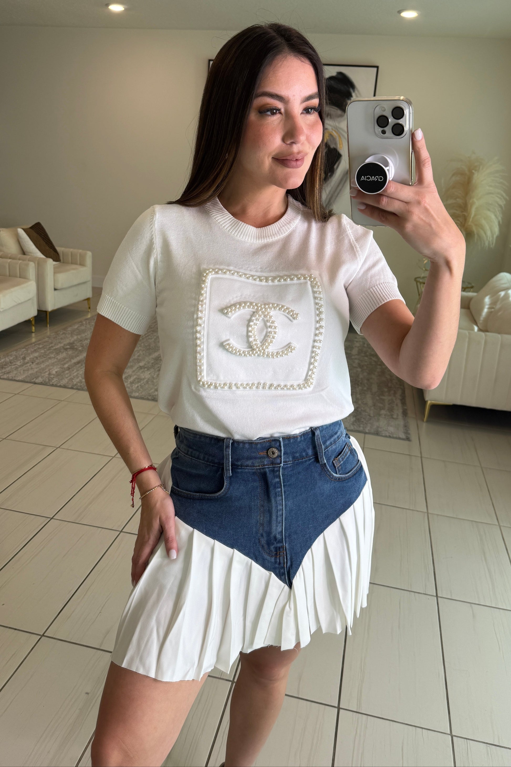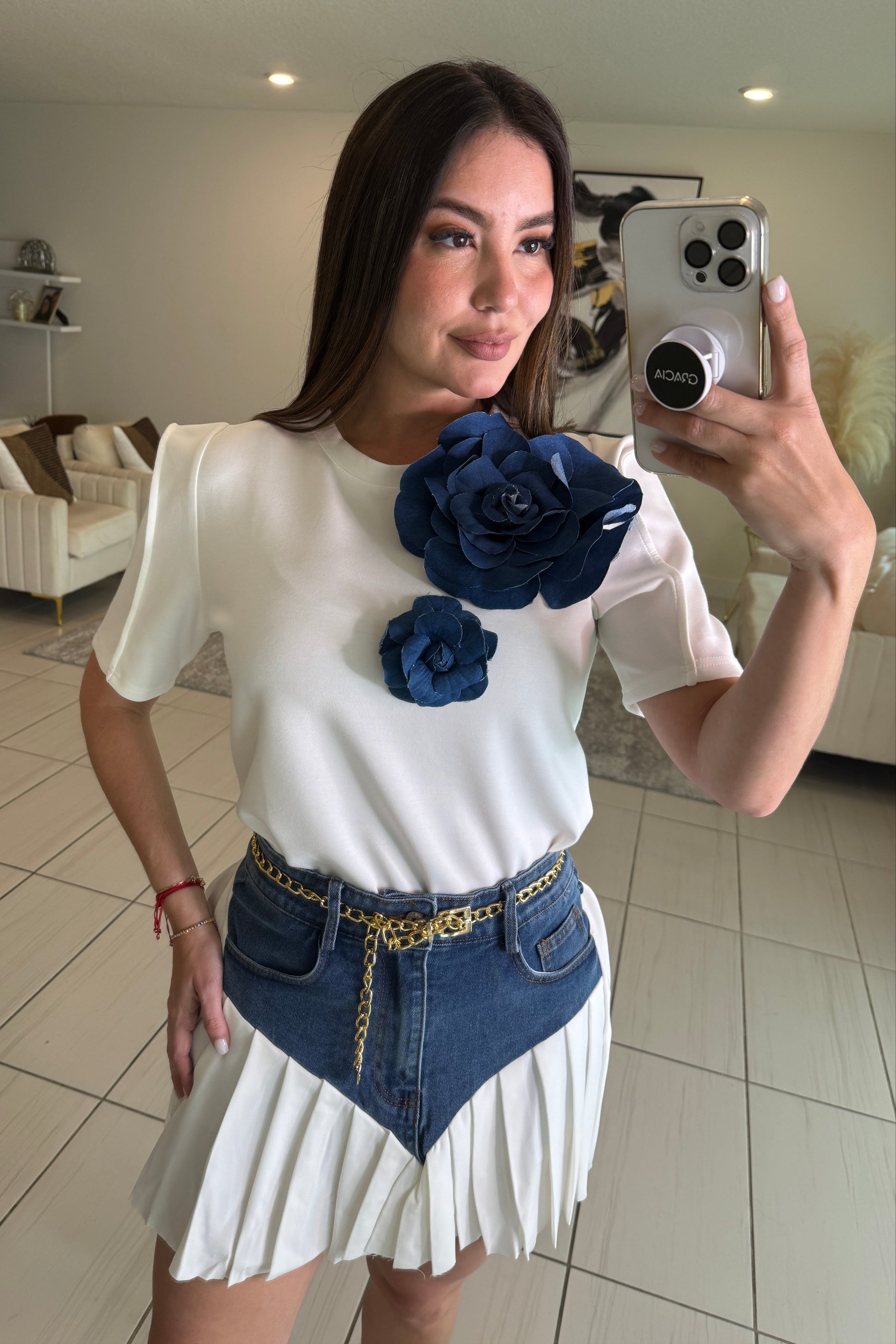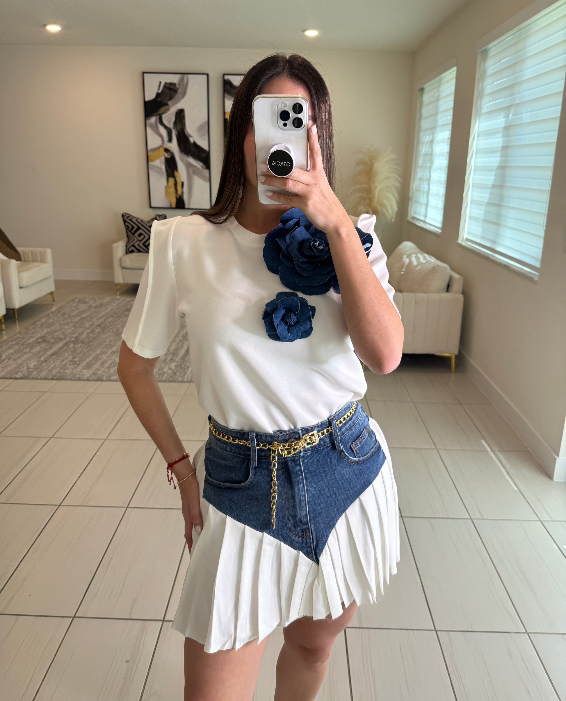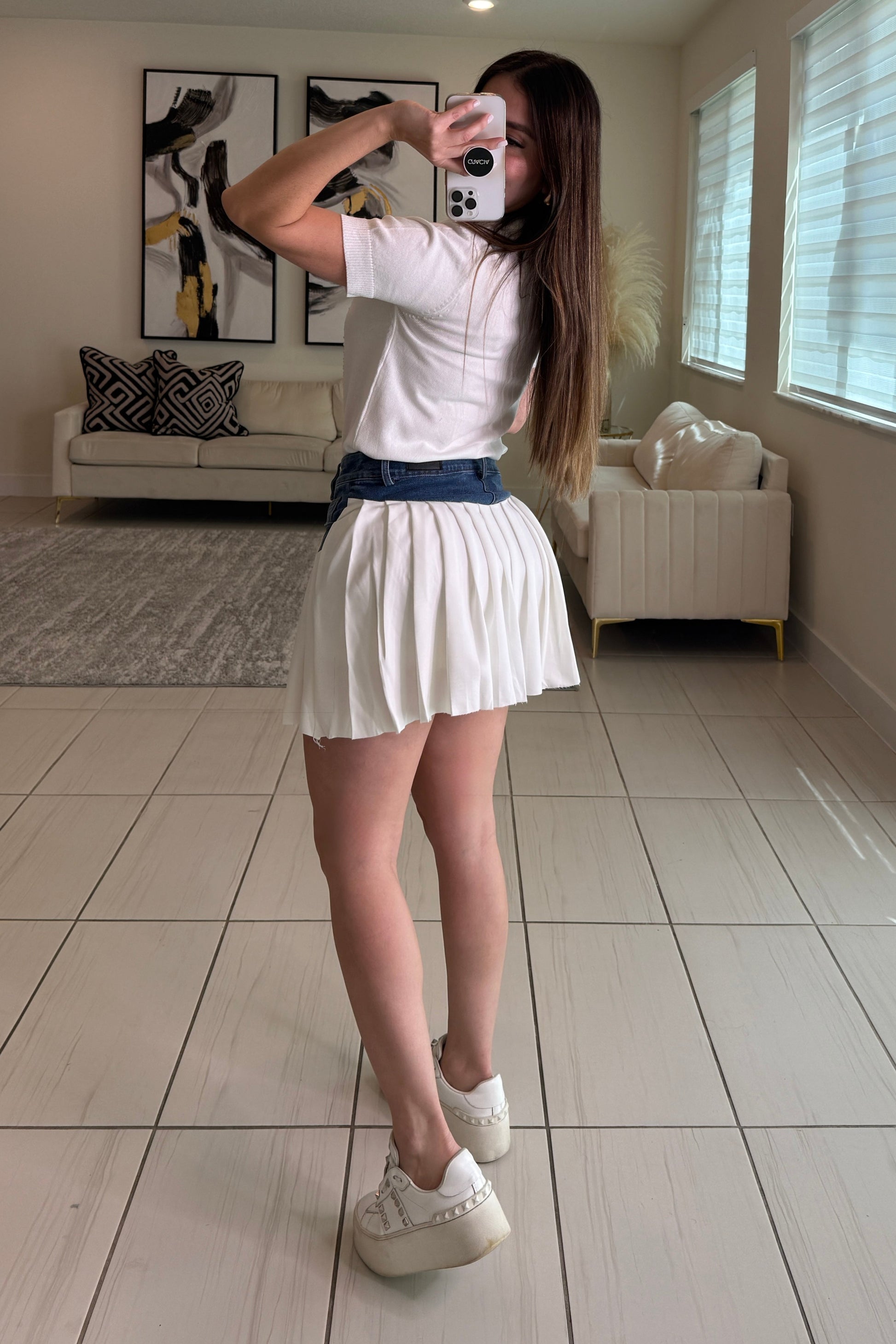 Embrace effortless style with the Strong Attraction White and Denim Skort. Combining crisp white fabric with classic denim, this versatile piece offers the freshness of a skirt with the comfort and practicality of shorts. Perfect for sunny days or casual outings, its unique design ensures you stay chic and confident wherever you go. Elevate your wardrobe with this must-have skort that blends fashion and function seamlessly.