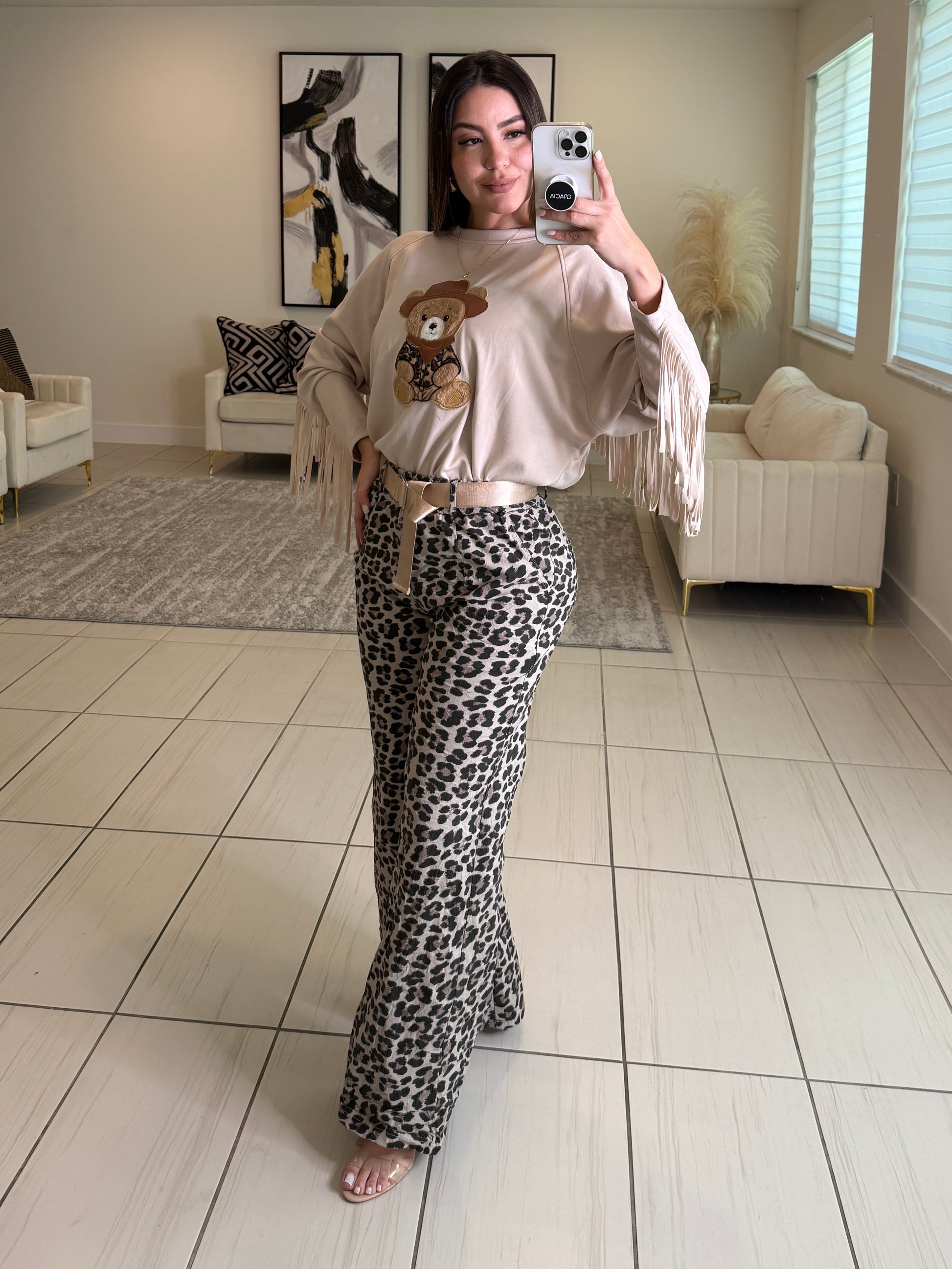 Make a bold fashion statement with our Synergy Leopard Print Pants. Designed to combine comfort and style, these pants feature a striking leopard pattern that adds an edgy yet sophisticated touch to any outfit. Perfect for both casual outings and spirited evenings, their flattering fit ensures you feel confident wherever you go. Elevate your wardrobe with a versatile piece that effortlessly blends wild flair with everyday wearability.